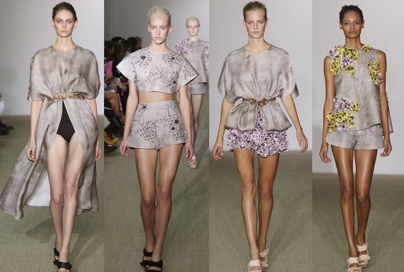 Giambattista Valli resolveu trabalhar essencialmente com flores. Elas apareceram em vários momentos em formato de pétalas de seda e na modelagem básica que, muitas vezes, assumiu o formato de rosas e orquídeas em pepluns sobre saias e shorts crutinhos. Destaque para os florais aplicados sobre tecidos elegantes, como a camisa cinza com flores nos ombros. A cartela, baseada em tons de cinza e preto, foi acesa com toques de amarelo, roxo e vermelho. Uma moda bonita e sofisticada, que deve conquistar mais do que nunca, as consumidoras mais jovens.